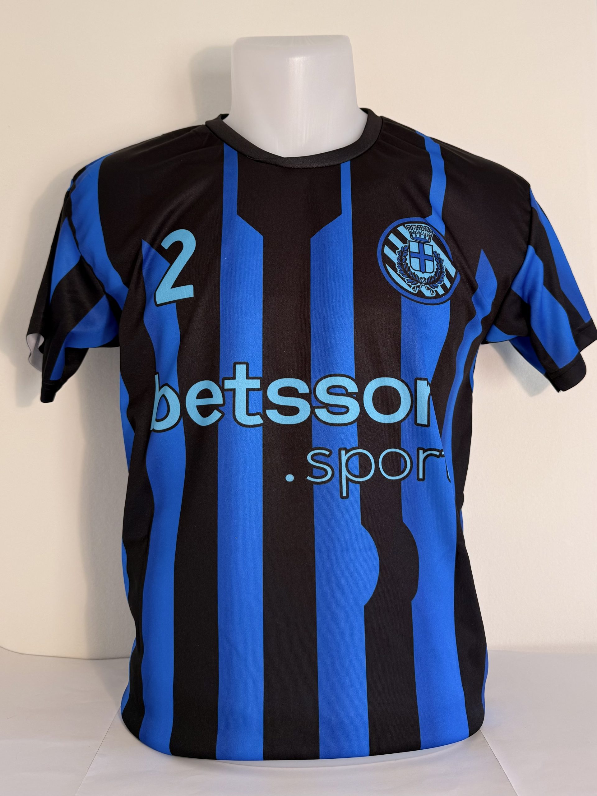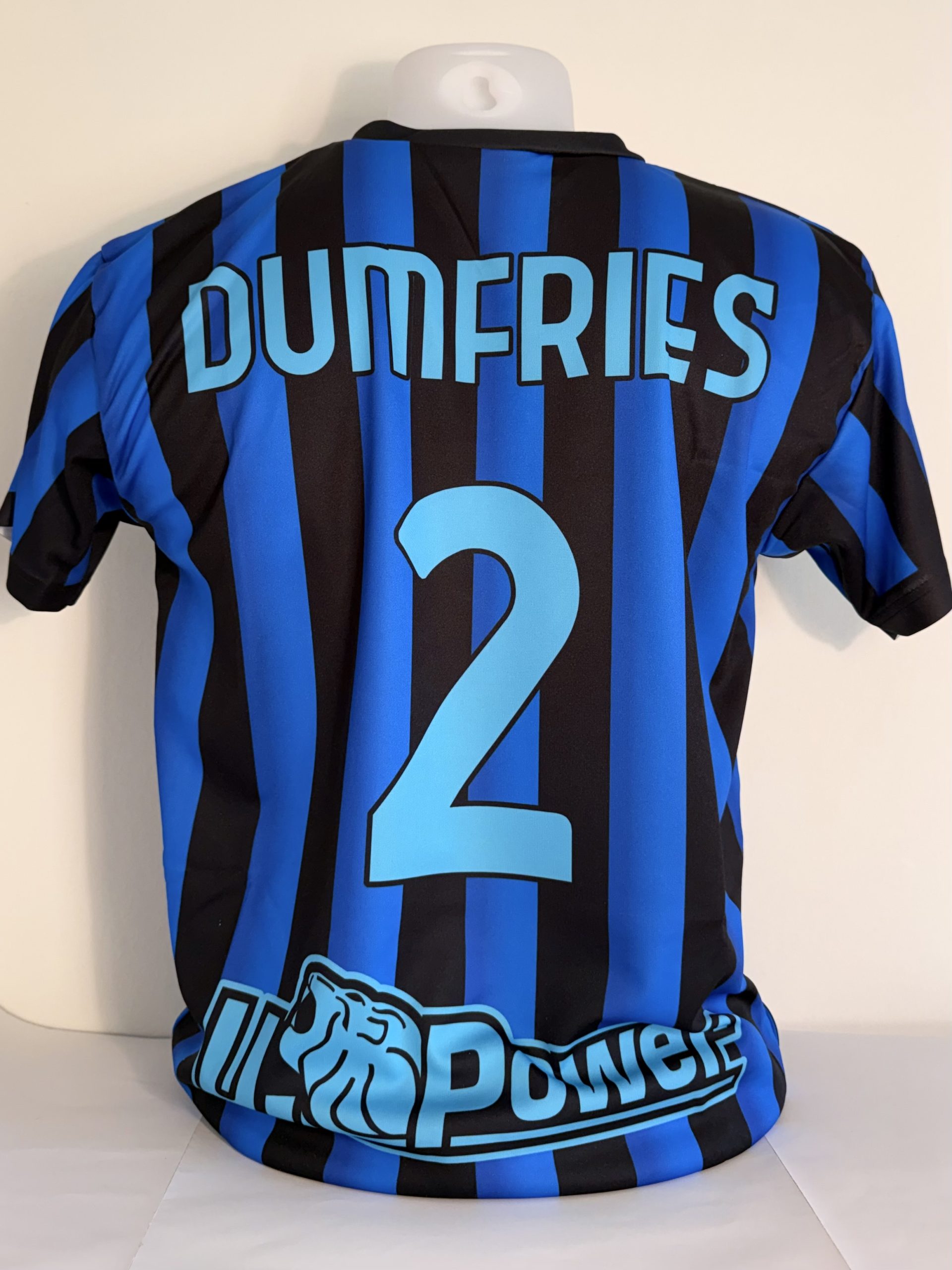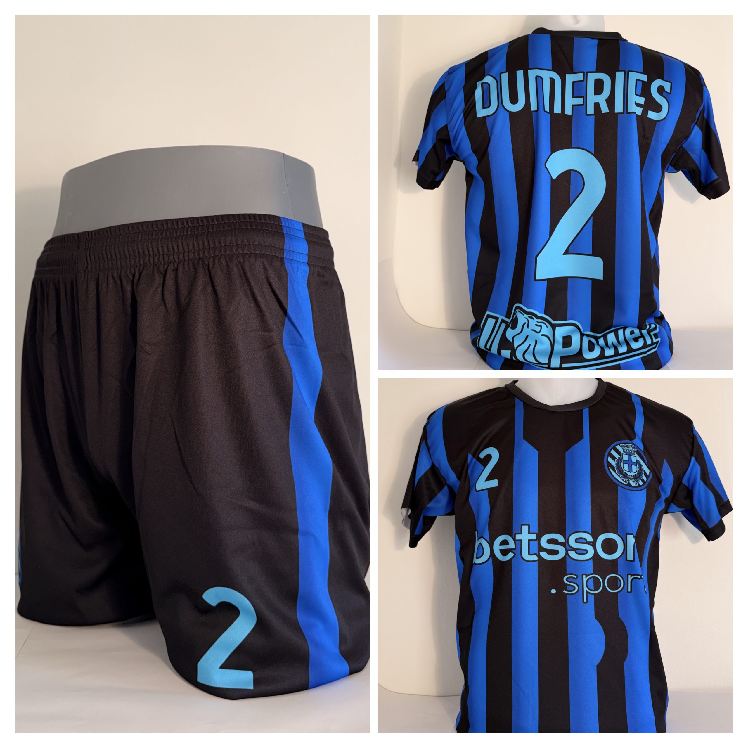 Dit is het thuis-tenue van de Inter Milan speler Denzel Dumfries, in de kleuren zwart met donker blauw.